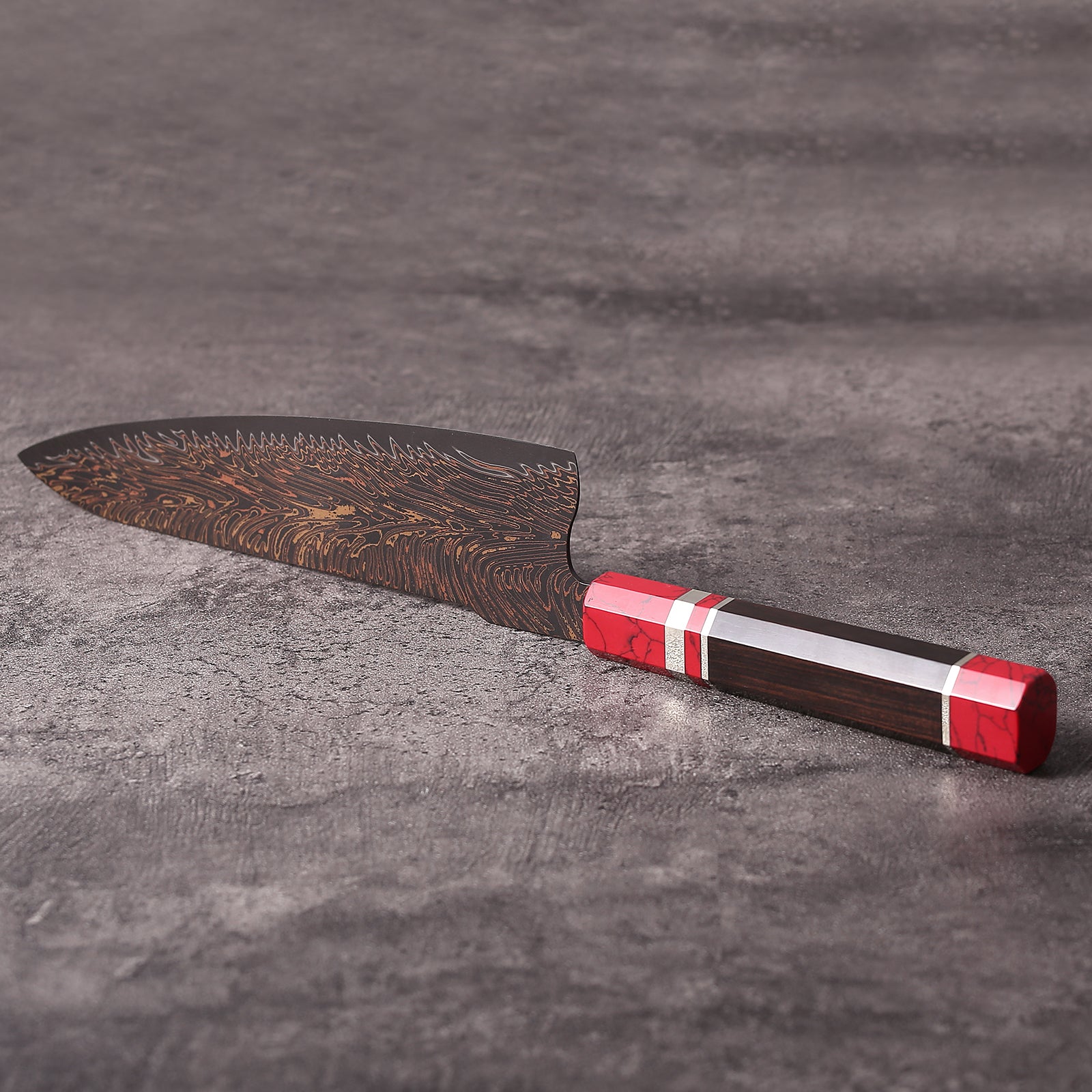 The Copper Mai chef knife is more than a kitchen tool—it’s a statement of craftsmanship. Hand-forged from premium VG-10 Damascus steel, this blade combines razor-sharp performance with striking aesthetics, making it the centerpiece of any chef’s collection.